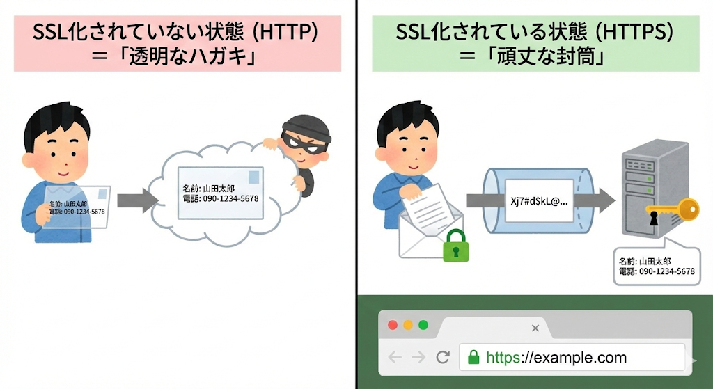 SSL化(https)とは?「ハガキ」と「封筒」で考える仕組み
